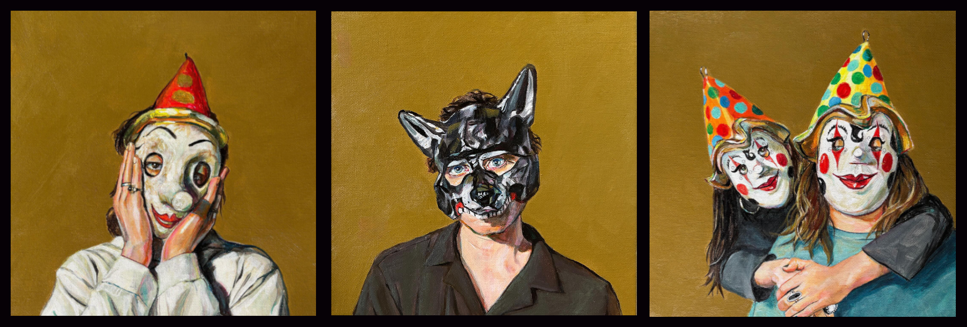 Cover art for three singles by Bruiser and Bicycle, each 10×10 acrylic on canvas